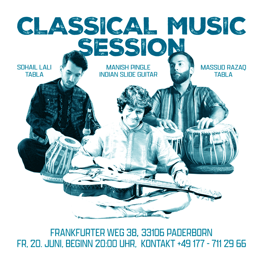 It's a private concert. Manish Pingle (Indian slide guitar) with Massud Razak and Sohail Lali (Tabla) |